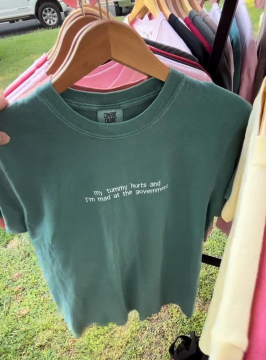 My tummy hurts and I'm mad at the government // Cute funny political tee